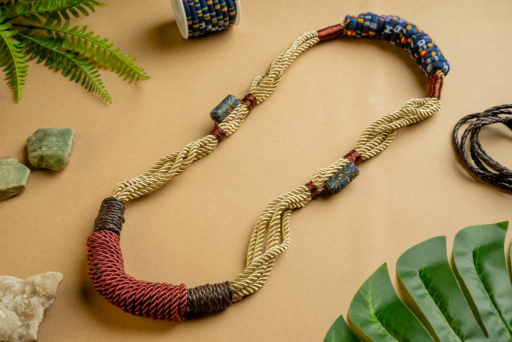 Bold Statement neckpieces are just the thing to add to your collection, when you have fabric cords and faux leather put together. Some Himalayan beads and neat spiral copper wires. Opt for it and theme it with your simple cotton dress, over your boy-friend shirt partly tucked into your Chinos or Blue jeans; they never go out of fashion, right?